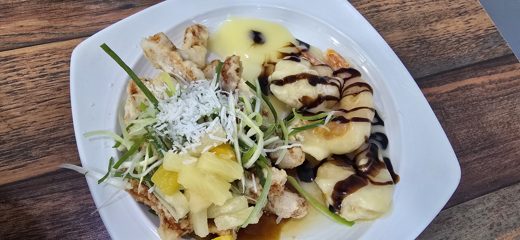보통 칠리새우를 많이 먹는데, 여기서는 크림소스에 찍어 먹는 새우튀김이 있었습니다. 바삭한 튀김과 고소한 크림소스 조합이 독특했지만 소스가 약간 느끼하게 느껴진다는 리뷰도 있었습니다.