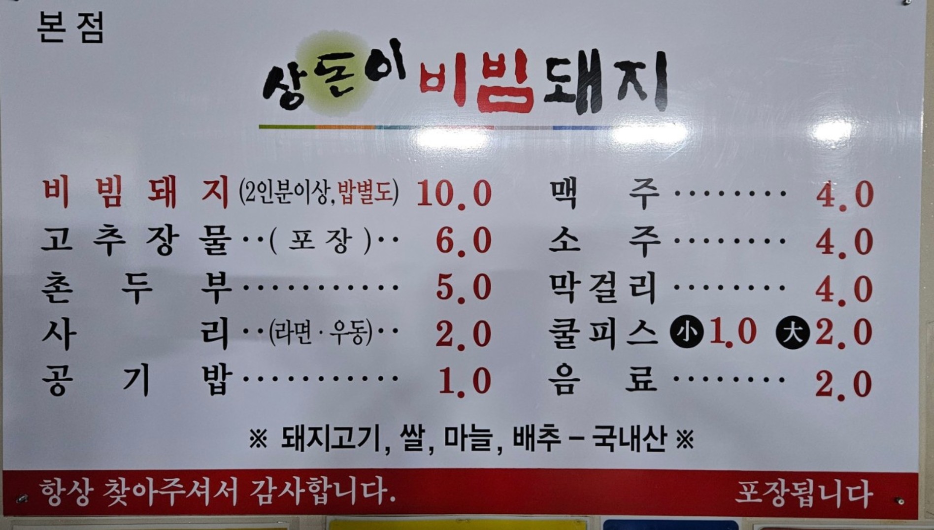 • 추가 비용 없이 공기밥 무료 제공