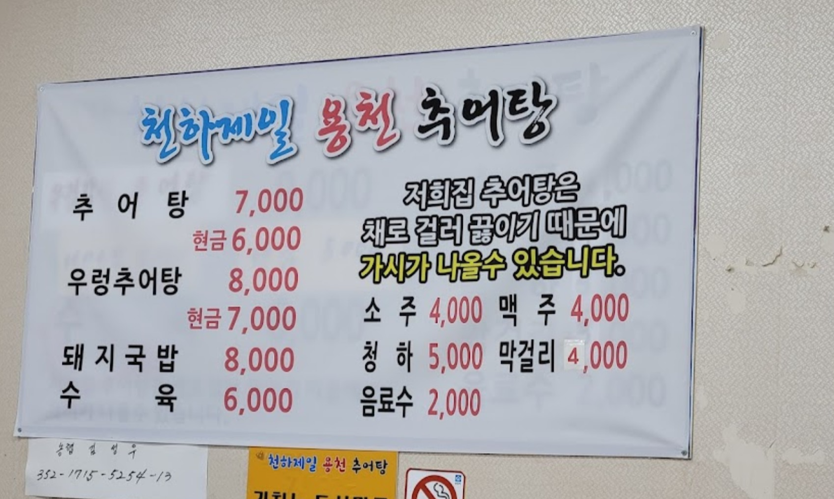 이러한 노력 덕분에 천하제일용천추어탕은 행정안전부의착한가격업소 선정되었으며, 실제로 방문해 보면 가격 대비 만족도가 상당히 높다는 것을 느낄 있습니다.