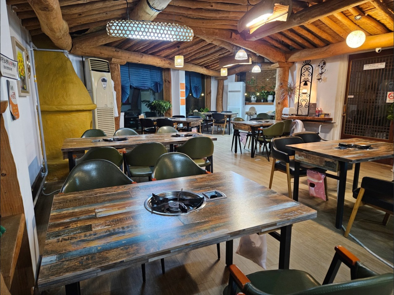식당 내부는 전통 한옥 스타일을 현대적으로 개조한 형태로, 나무 인테리어가 따뜻한 느낌을 줍니다.