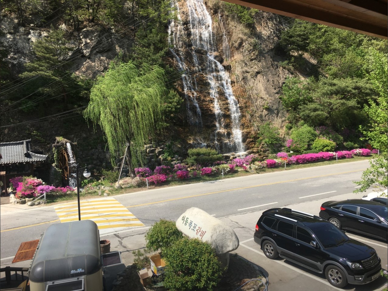 자연 속에서 즐기는 식사 – 폭포와 계곡을 바라보며 먹는 갈비의 맛은 더욱 특별합니다.