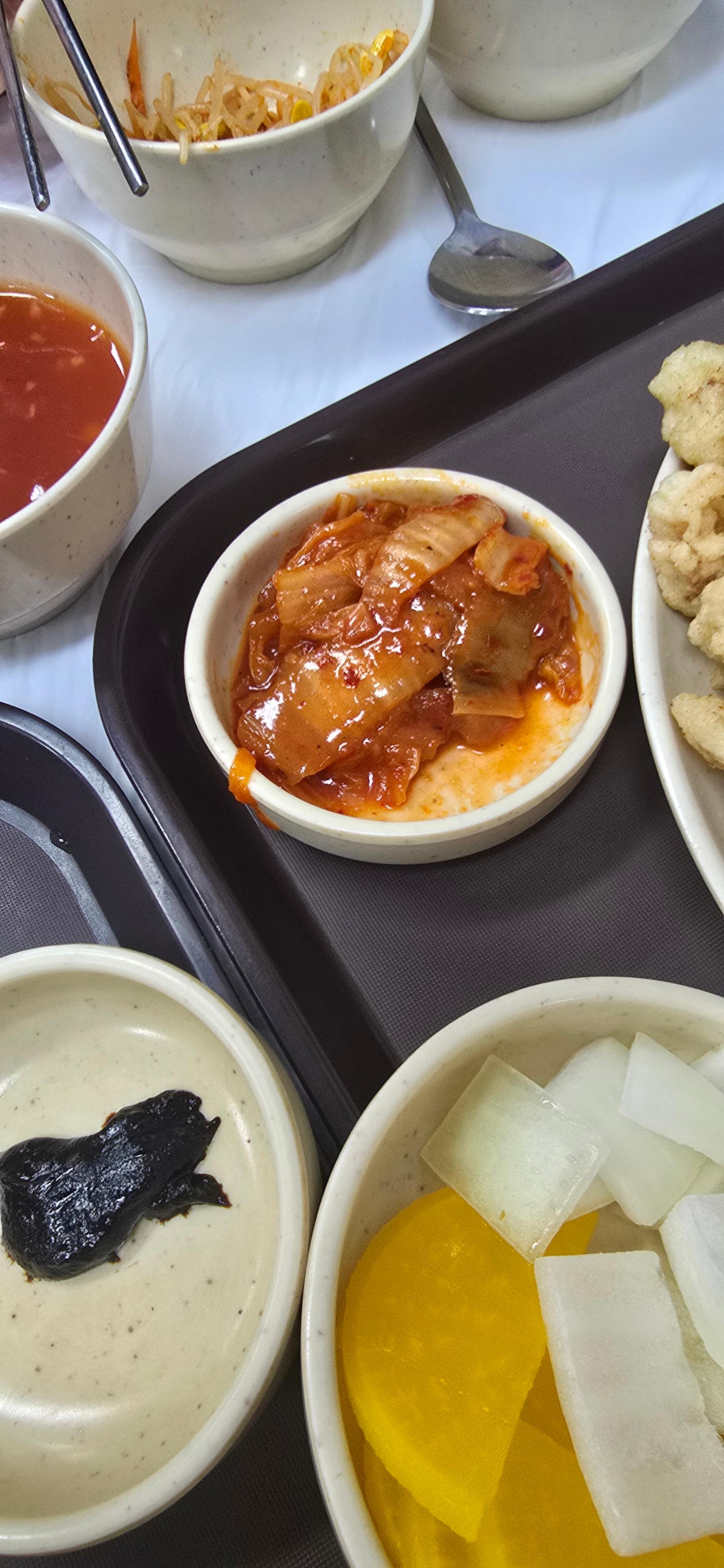기본 반찬으로 단무지, 양파, 춘장, 볶음김치, 김치가 제공되었습니다. (셀프로 더 가져올 수 있어요) 볶음김치는 적당히 달달한 맛이 가미되어 있어 밥과 함께 먹으면 훨씬 맛있을 듯했지만, 아쉽게도 밥은 따로 먹지 않았습니다. (배가 너무 불렀어요 ㅠㅠ)