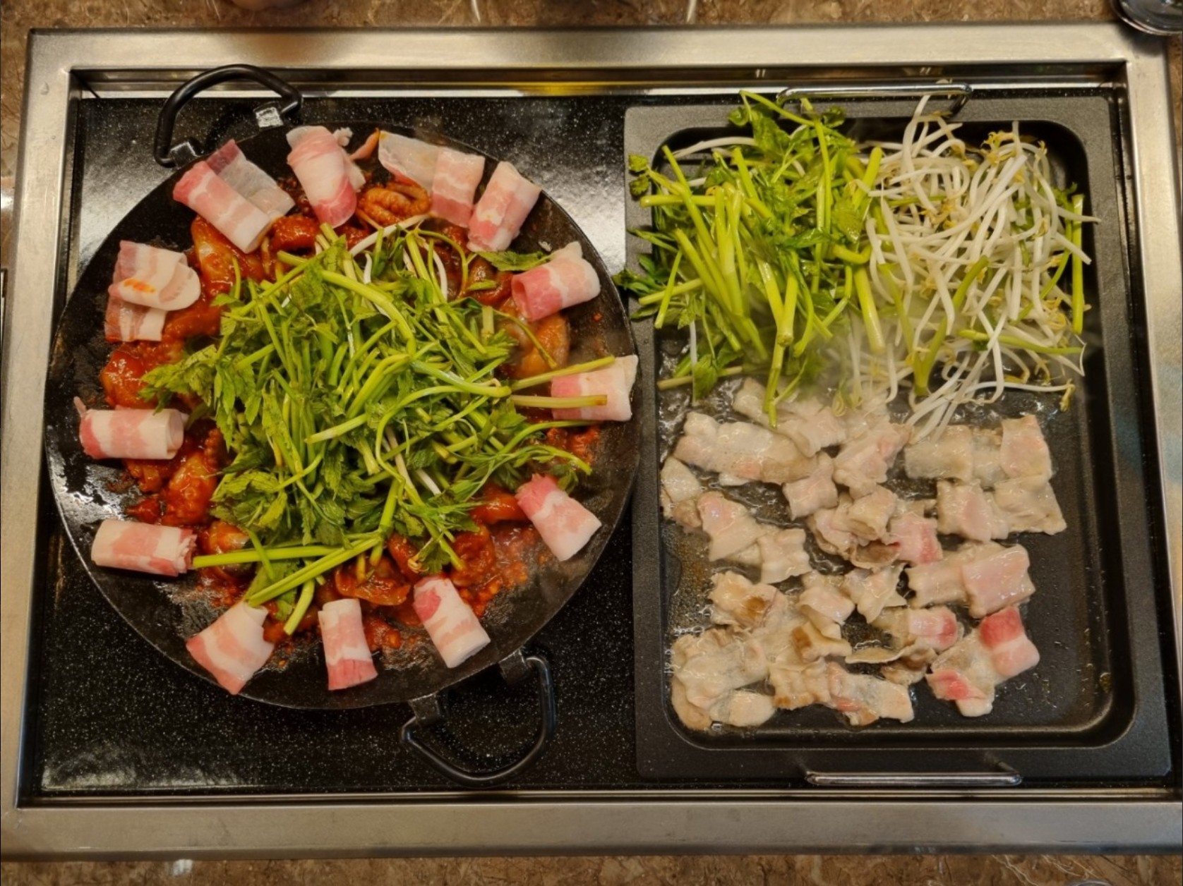 ▶ 철판 쭈꾸미 + 대패삼겹 세트